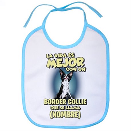 Babero la vida es mejor con un perro raza Collie Border que se llama personalizable con nombre