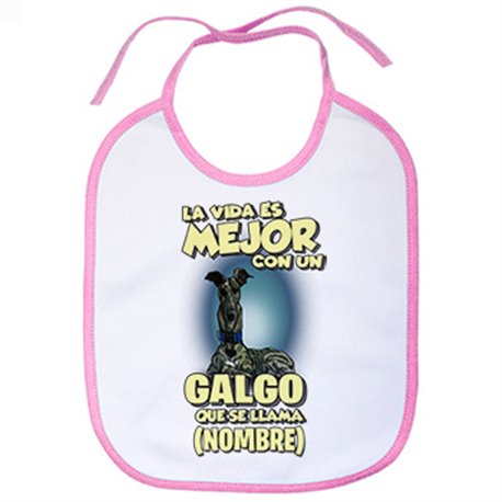 Babero la vida es mejor con un perro raza Galgo atigrado que se llama personalizable con nombre