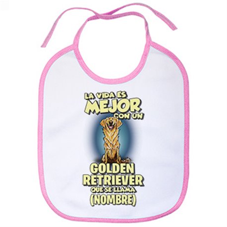 Babero la vida es mejor con un perro raza Golden Retriever que se llama personalizable con nombre