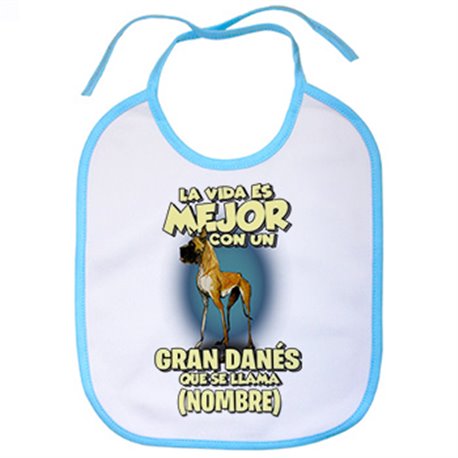 Babero la vida es mejor con un perro raza Gran Danés que se llama personalizable con nombre