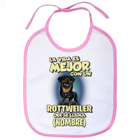 Babero la vida es mejor con un perro raza Rottweiler que se llama personalizable con nombre