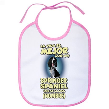 Babero la vida es mejor con un perro raza Springer Spaniel negro que se llama personalizable con nombre