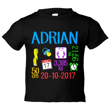 Camiseta bebé natalicio ficha personalizable de nacimiento niño recién nacido