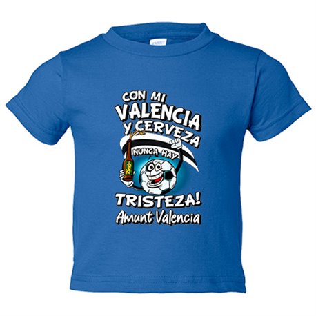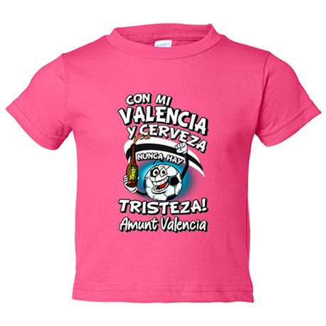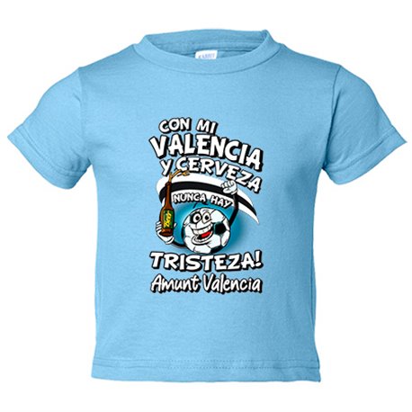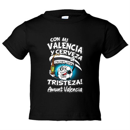 Camiseta bebé frase con mi Valencia y cerveza nunca hay tristeza para aficionado al fútbol