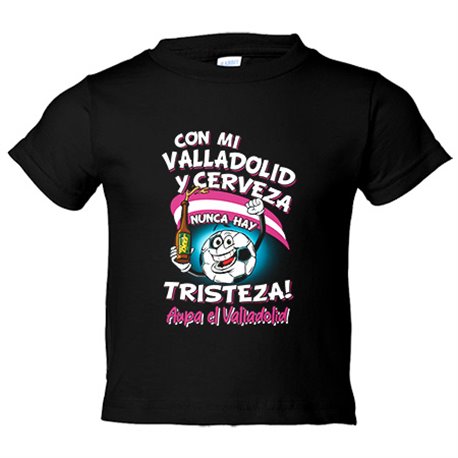 Camiseta bebé frase con mi Valladolid y cerveza nunca hay tristeza para aficionado al fútbol