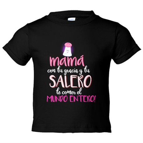 Camiseta bebé mamá con tu gracia y tu salero te comes el Mundo entero