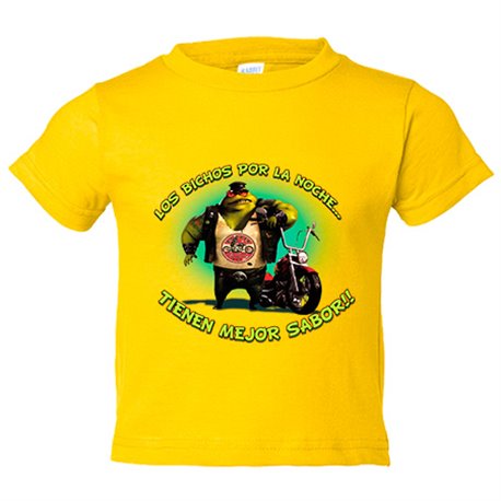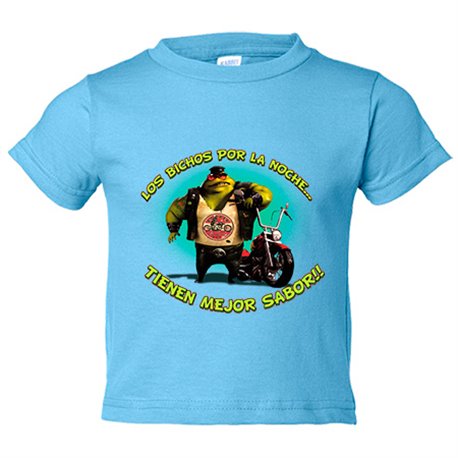 Camiseta bebé para moteros los bichos por la noche tienen mejor sabor