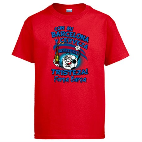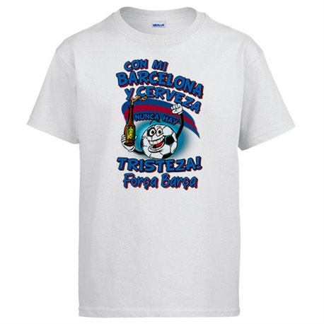 Camiseta frase con mi Barcelona y cerveza nunca hay tristeza para aficionado al fútbol
