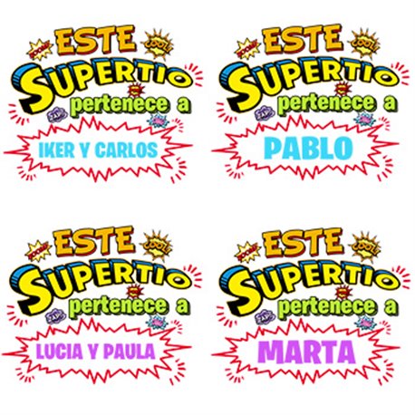 Cojín con relleno personalizable con nombre ejemplo Este Super Tío pertenece a Juan y Susana