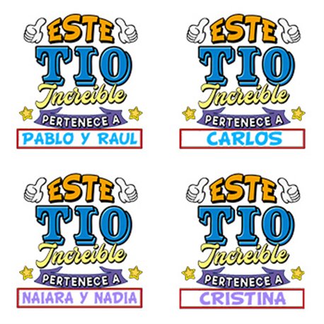 Monedero personalizable con nombre ejemplo Este Tío increíble pertenece a Pablo y Carlos